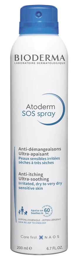 Az Atoderm SOS Spray a nap bármely szakaszában alkalmazható, reggel és/vagy este enyhe vagy erős viszketés esetén.
