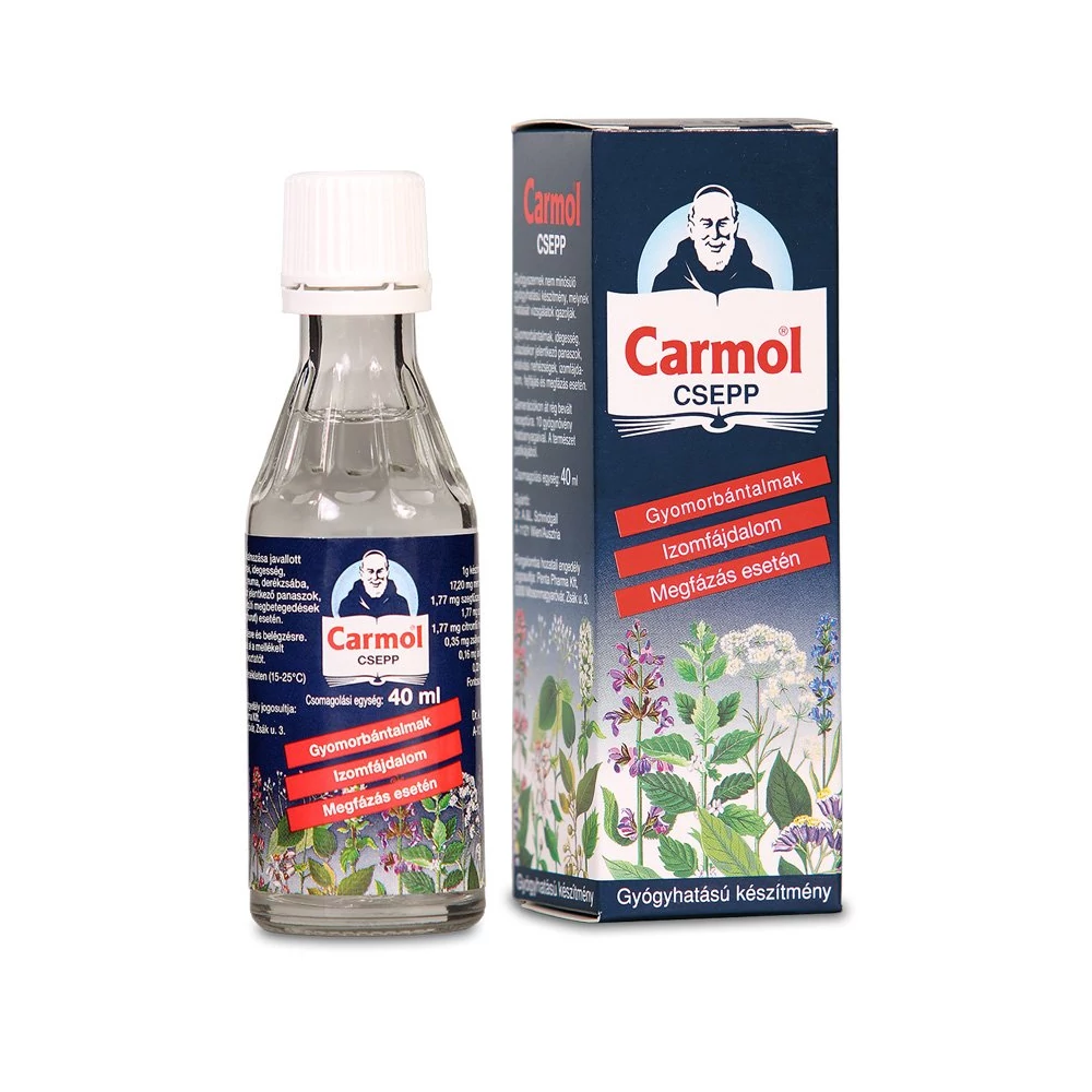 Puffadás, teltségérzet, emésztési zavarok, fejfájás esetén: 10-20 csepp Carmol-t kockacukorra, teába vagy vízbe csepegtetni.