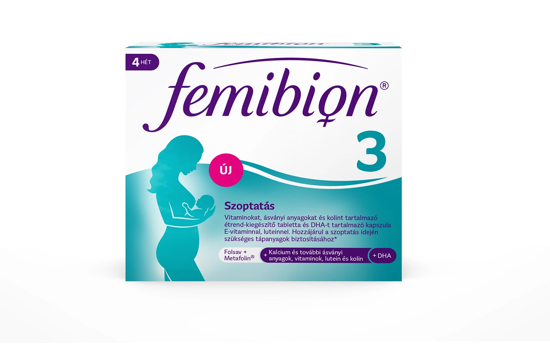 "A Femibion 3 gondosan kiválasztott összetevőket tartalmaz, amelyek egy változatos étrend kiegészítéseként támogatnak téged. Az összetevők között megtalálható a DHA, a folát, a D- és A-vitamin, a vas, a kalcium, a kolin, és a lutein. Ezenkívül tartalmaz jódot, szelént, cinket, B-, C- és E-vitaminokat. A vas hozzájárul a fáradtság és a kifáradás csökkentéséhez, a kalcium pedig szükséges a normál csontozat fenntartásához.