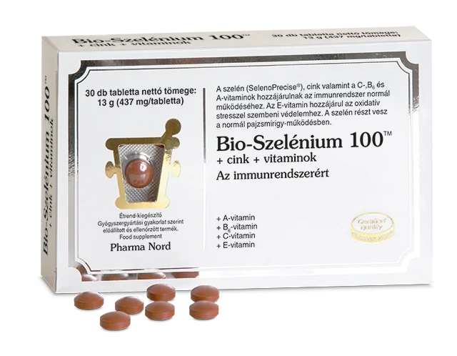 SelenoPrecise® A Bio-Szelénium 100+Cink+Vitaminok 100 μg SelenoPrecise-t tartalmaz, mely a Pharma Nord szabadalmaztatott szerves kötésű és magas felszívódással rendelkező szelénes élesztője. Ez az élesztő 67% L-selenomethionint és 33% másfajta különböző szelén fajtát tartalmaz.