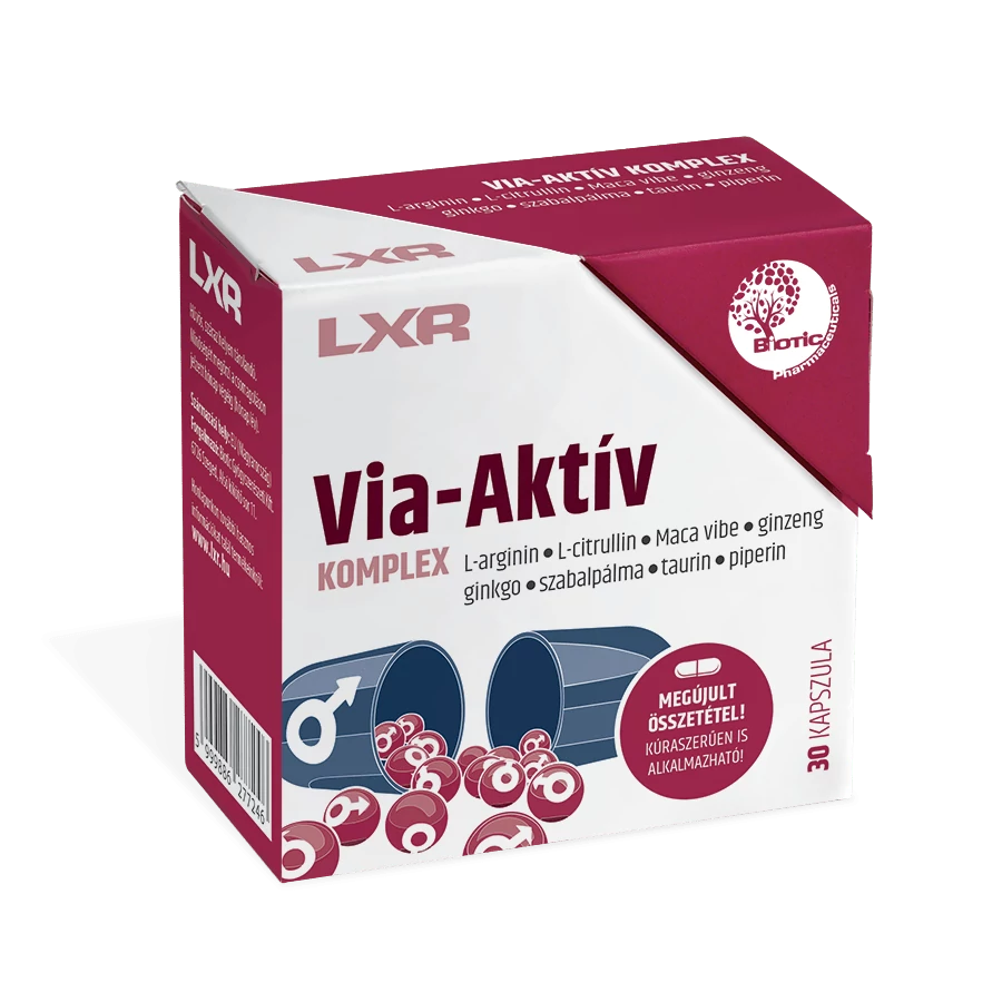 A megújult LXR VIA-AKTÍV KOMPLEX hatóanyagai a gyógyszeres kezelést nem igénylő potenciazavarok esetében támogatják a libidót, az erekciót, a természetes szexuális aktivitást, a prosztata egészségét, a keringést, a fizikai és szellemi teljesítőképességet.