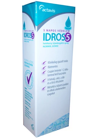 Az Idros 5 spray alkalmazható a hónaljon kívül kívül a teljes törzsön és a kéz és a láb bőrfelületein. Használata nem igényel mindennapos használatot, már heti 1-2 alkalommal elérhető a kívánt hatás. Hatékonyságát klinikai vizsgálatok igazolják. Az Idros 5 spray illatmentes, így illatosított termékkel (dezodor, parfüm) való együttes használata nem okoz problémát.