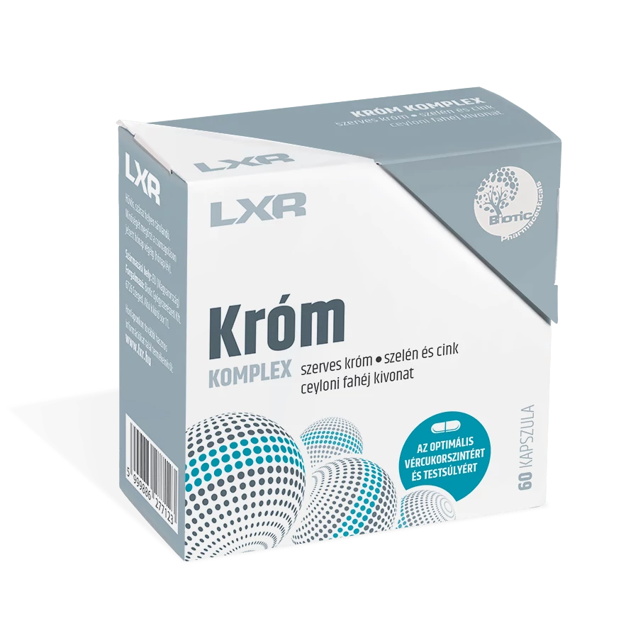 Az LXR KRÓM KOMPLEX a vércukorszint optimalizálása érdekében ideális mennyiségben (200 mcg) tartalmaz krómot jó felszívódású szerves kötési formában (króm-pikolinát). A készítmény 2-es típusú cukorbetegségben és inzulinrezisztenciában szenvedő betegek kezelésének étrendi kiegészítésére, illetve fogyókúrás célok támogatására javasolt.