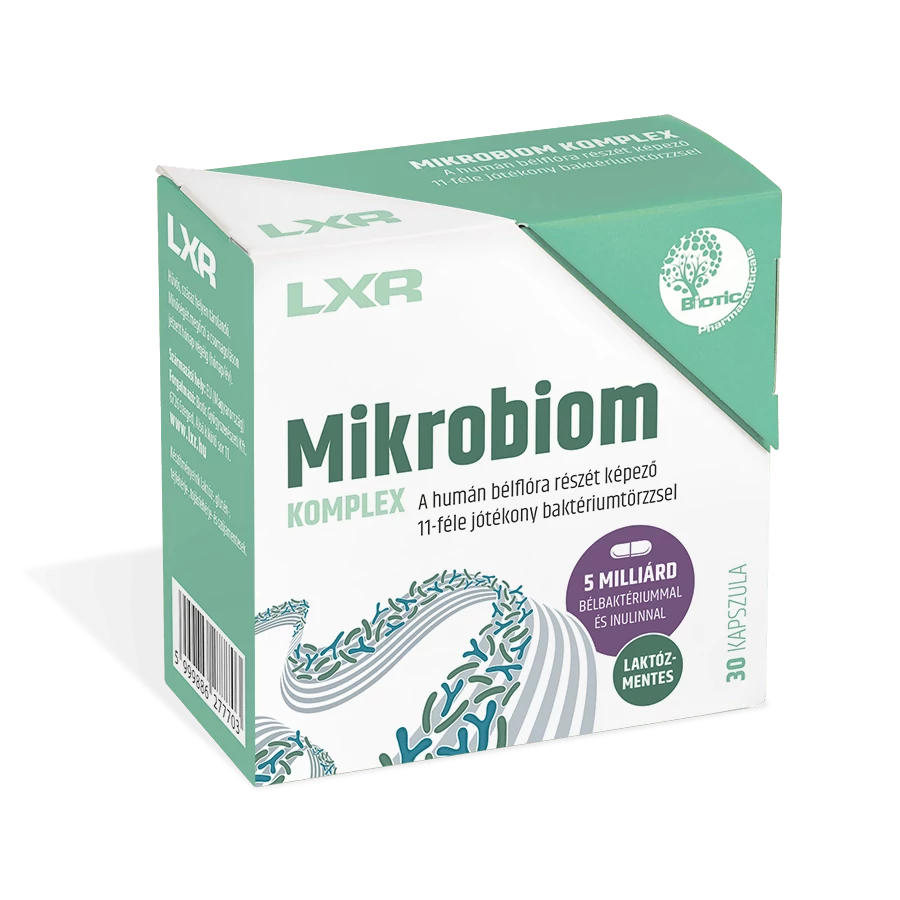 Az LXR MIKROBIOM KOMPLEX 11-féle jótékony baktériumtörzset tartalmaz, melyek megtalálhatók az emberi bélflórában és aktív alkotóelemét képezik a szervezettel szinergikusan együttműködő (emésztés, vitaminok termelése, immunvédekezés stb.), a vastagbélben található bakteriális élőflórának.