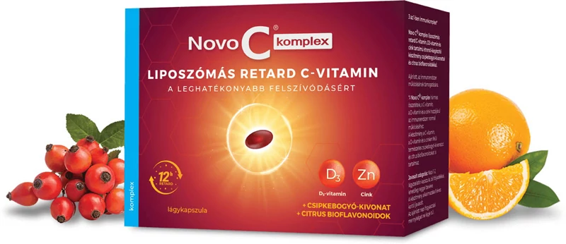 Novo C komplex – Liposzómális C-vitamin, D3-vitamin és Cink tartalmú étrend-kiegészítő készítmény csipkebogyó kivonattal és citrus bioflavonoidokkal. A Novo C komplex hármas összetétele (C-, D3-vitamin és Cink) hozzájárul az immunrendszer normál működéséhez.