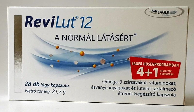 A ReviLut 12 omega-3 zsírsavakat, vitaminokat, ásványi anyagokat és luteint tartalmazó étrend-kiegészítő kapszula. A dokozahexaénsav (DHA) és a cink hozzájárulnak a normál látás fenntartásához.