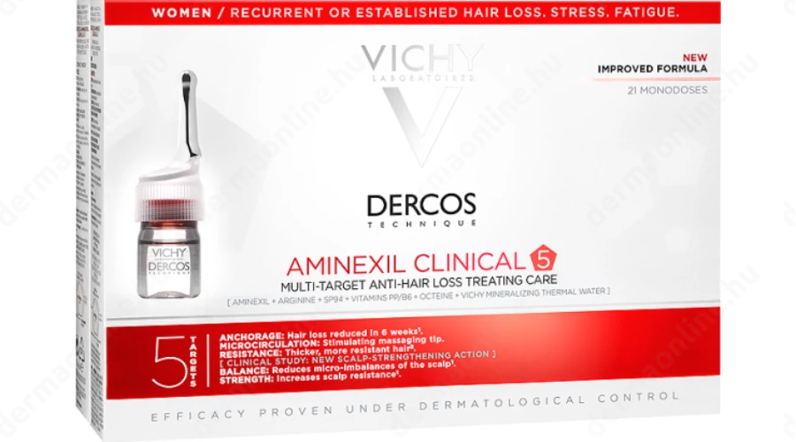 Vichy Dercos Aminexil Clinical 5 többfunkciós hajápoló program hajhullás ellen nőknek 21 x 6 ml
