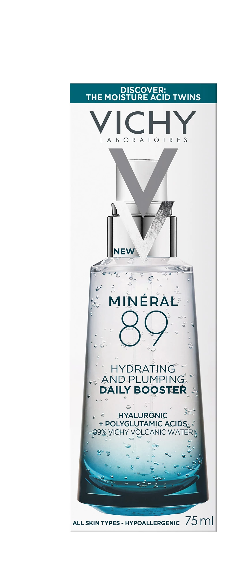 INNOVÁCIÓ: ikonikus formula 89% Vichy termálvízzel, most Hidratáló sav DUÓVAL felerősítve [hialuronsav a bőr felszínén hat + poliglutaminsav a bőrben akár 10 réteg mélyen is hat* ] a kettős hatékonyságért.