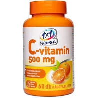 C-vitamint tartalmazó narancs ízű étrend-kiegészítő rágótabletta szorbittal és édesítőszerrel. Az 1x1 C-vitamin 500mg C-vitamint tartalmaz, mely hozzájárul az immunrendszer normál működéséhez.