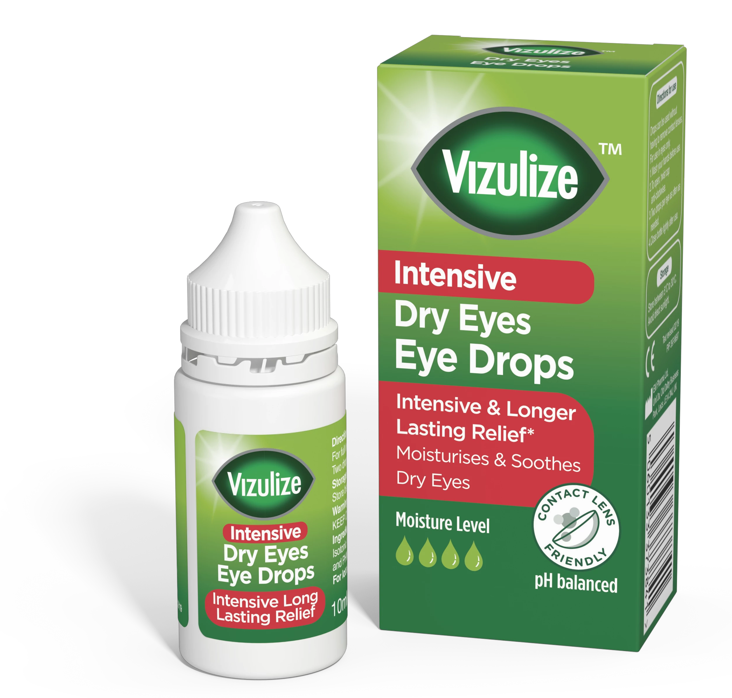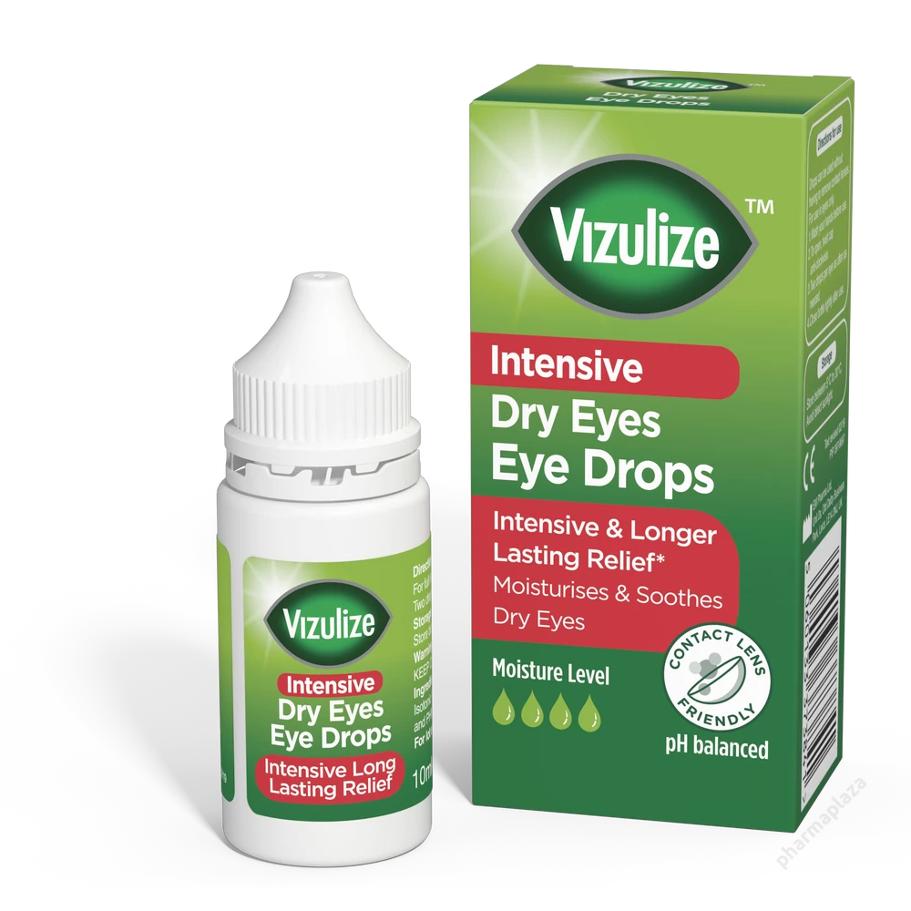 A Vizulize Intensive Dry Eye Drops kifejezetten azért fejlesztették ki, hogy enyhítse a szem kiszáradását és az ehhez kapcsolódó irritációt, érzékenységet és kellemetlenséget, amelyet a számítógép és a mobil eszköz képernyőjének hosszabb idejű használata, az intenzív monitor közeli munka, a kontaktlencse használat, az öregedés és a hormonális változások okoznak. Ideálisak a klíma, központi fűtés, szennyeződés, forró vagy szeles környezetnek kitett szemek kezelésére is.